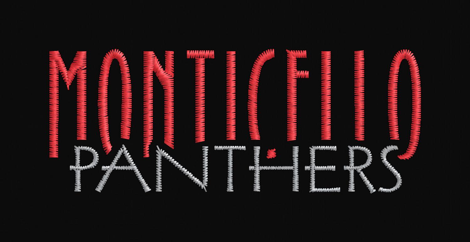 Customer: Monticello Sports Design: 196 Description: Monticello Panther Overlapping Text For Product Colors: Options (locations): Embellishment Type: 2