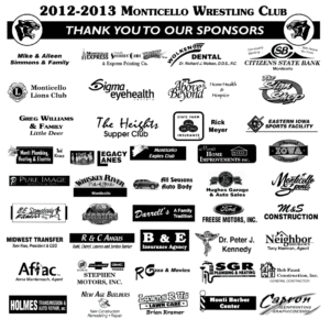 Customer: Monticello Sports Design: 356 Description: Monticello Wrestling Club Grey shirts w Sponsor Back For Product Colors: Grey Options (locations): Embellishment Type: 1