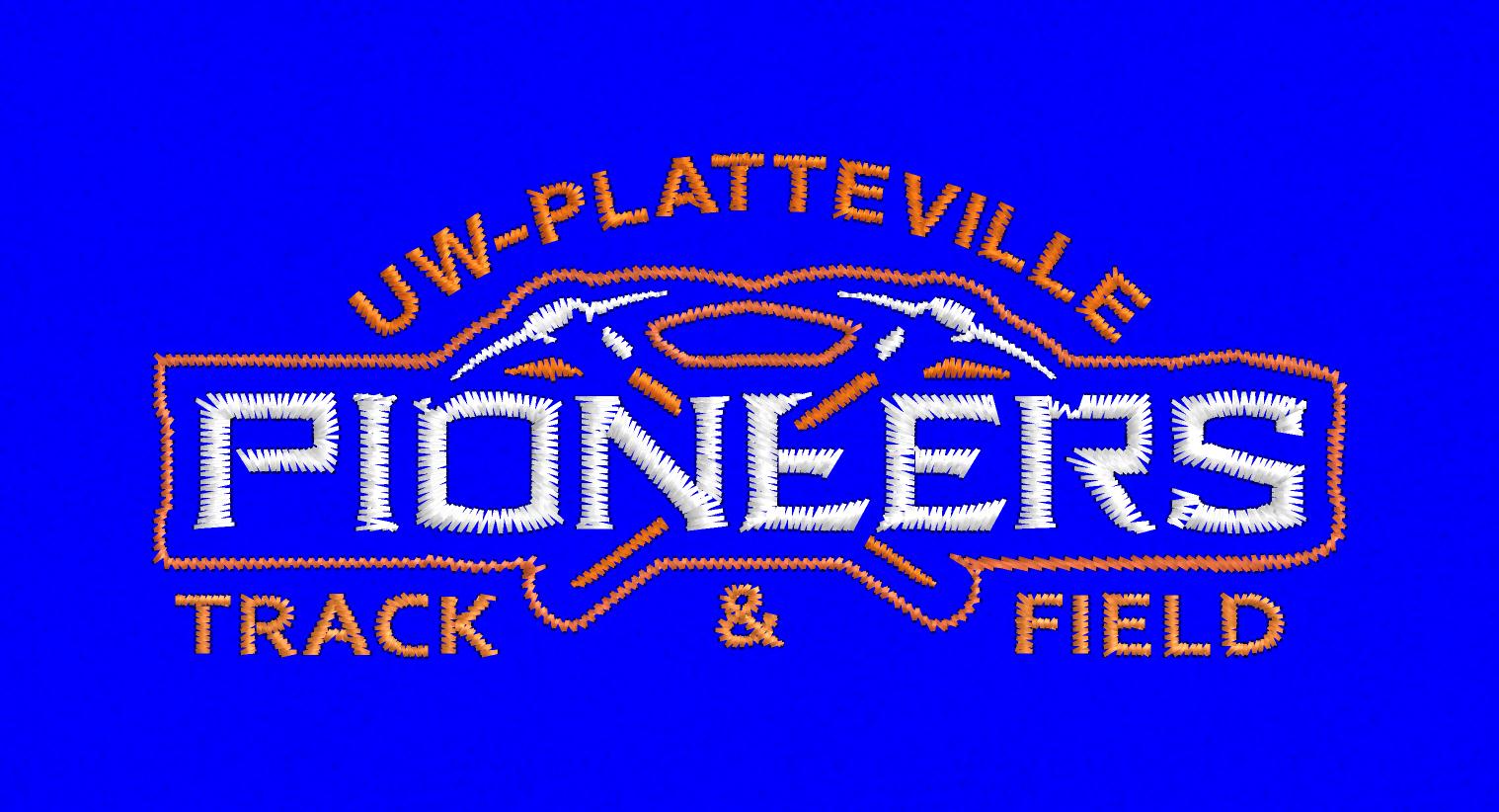 Customer: Monticello Sports Design: 403 Description: UW-Platteville PIONEERS Track & Field 3 inch For Product Colors: ROYAL Options (locations): Embellishment Type: 2